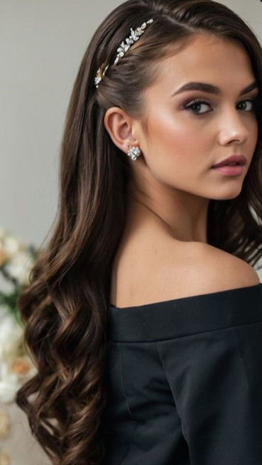 Soft, voluminous waves paired with tucked bangs offer a glamorous yet approachable appearance, suitable for both classic and contemporary weddings.
