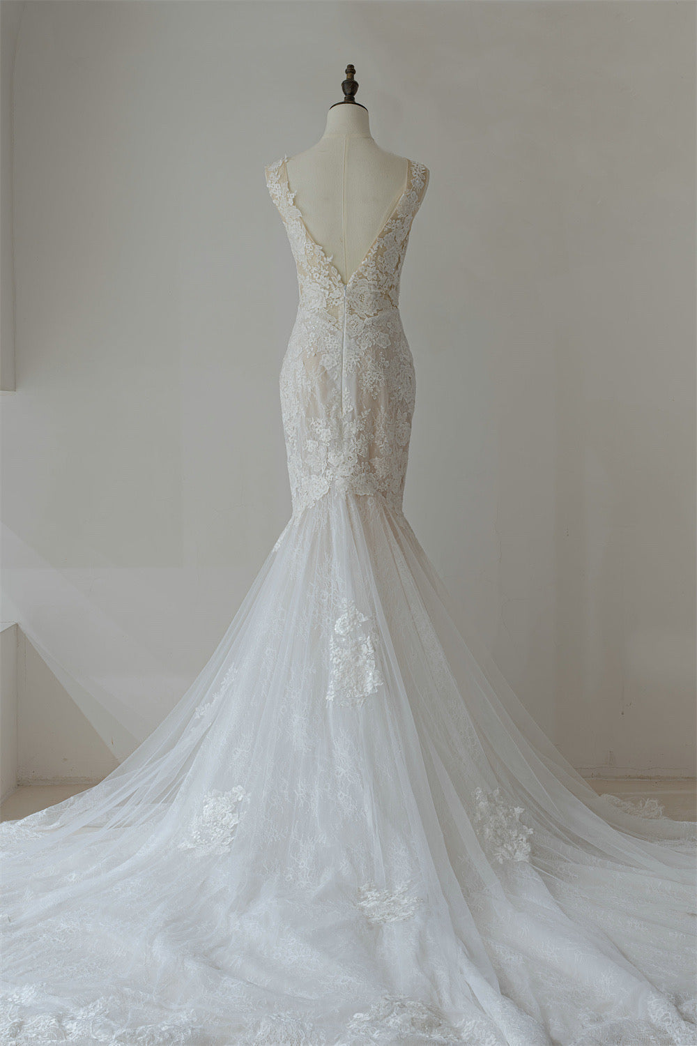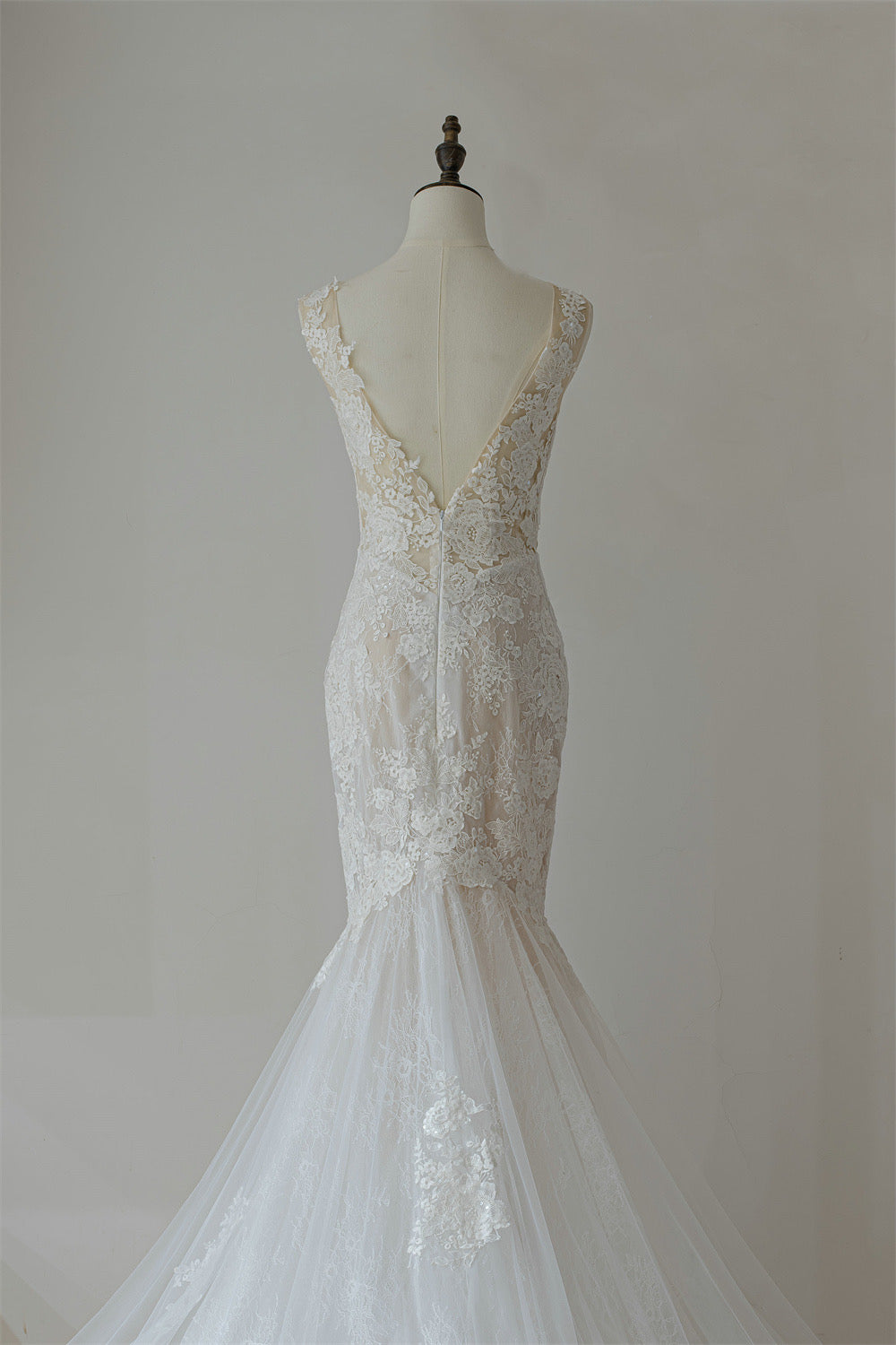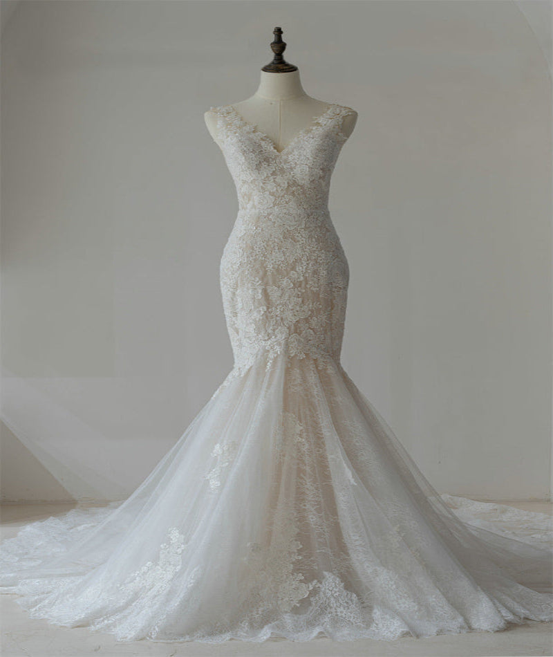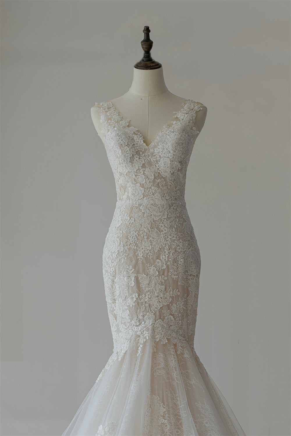 Expertly crafted for elegance and allure, "Blakely" is a stunning mermaid gown featuring a v-cut bodice and a low-cut back. Embodying classic beauty and modern sophistication, it will make any bride feel like a true vision on her special day.