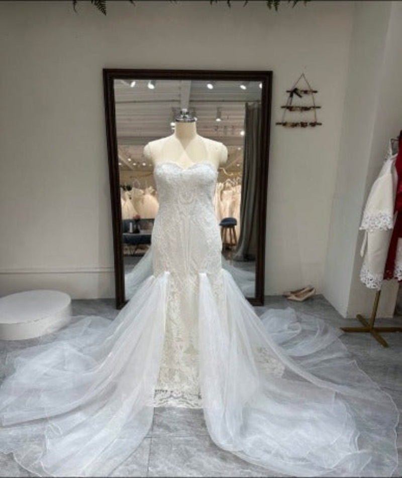 this beautiful mermaid gown crafted with intricate sequence detailing, providing a touch of elegance to any dress. This beautiful sequence adds texture and dimension to your look.