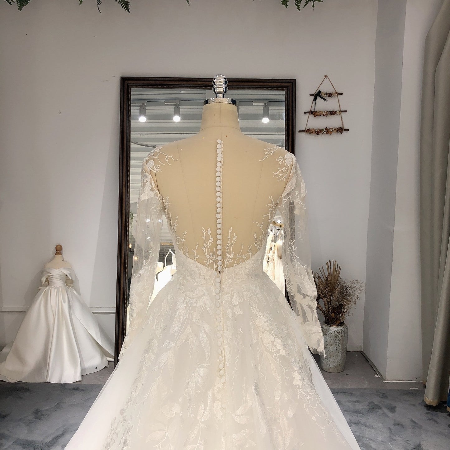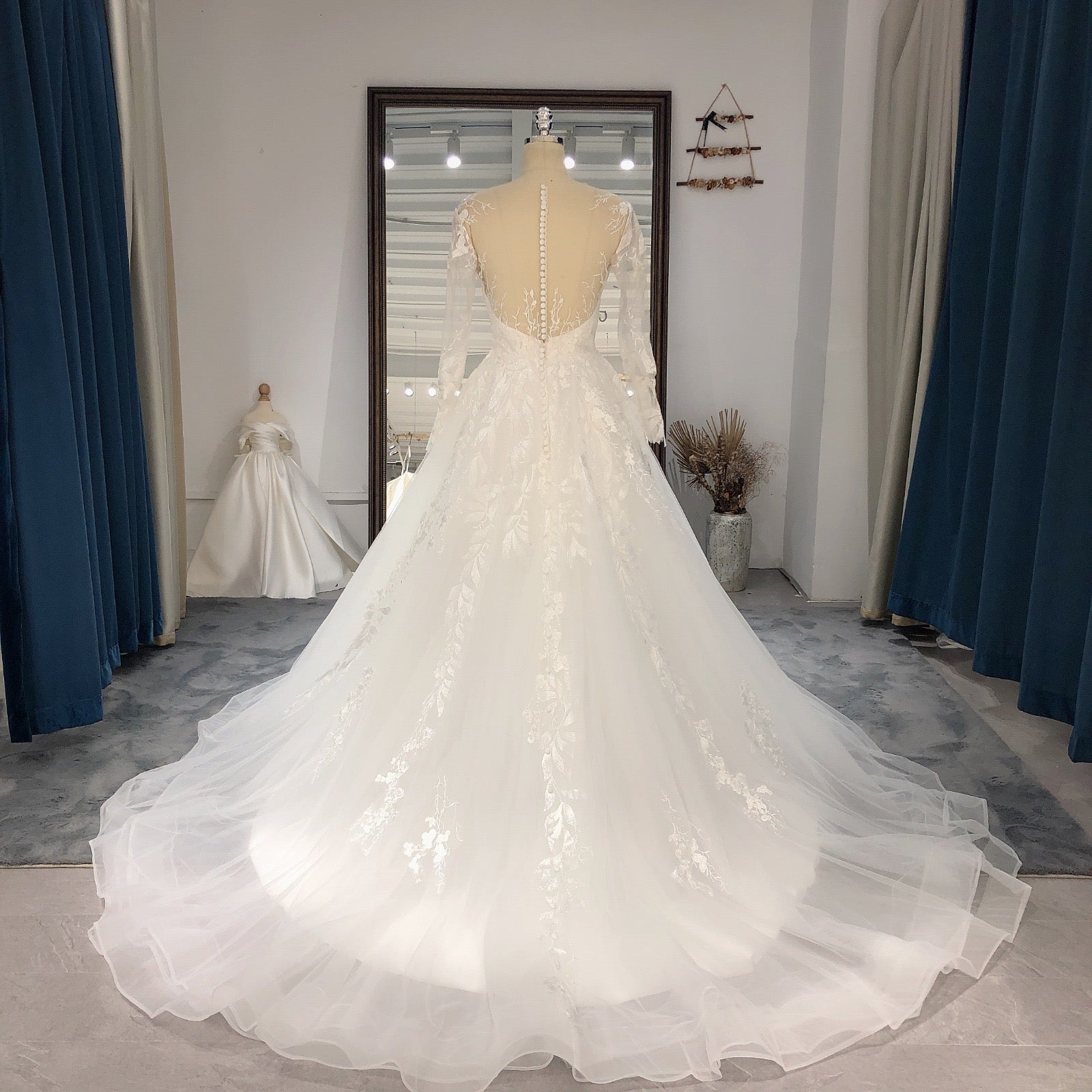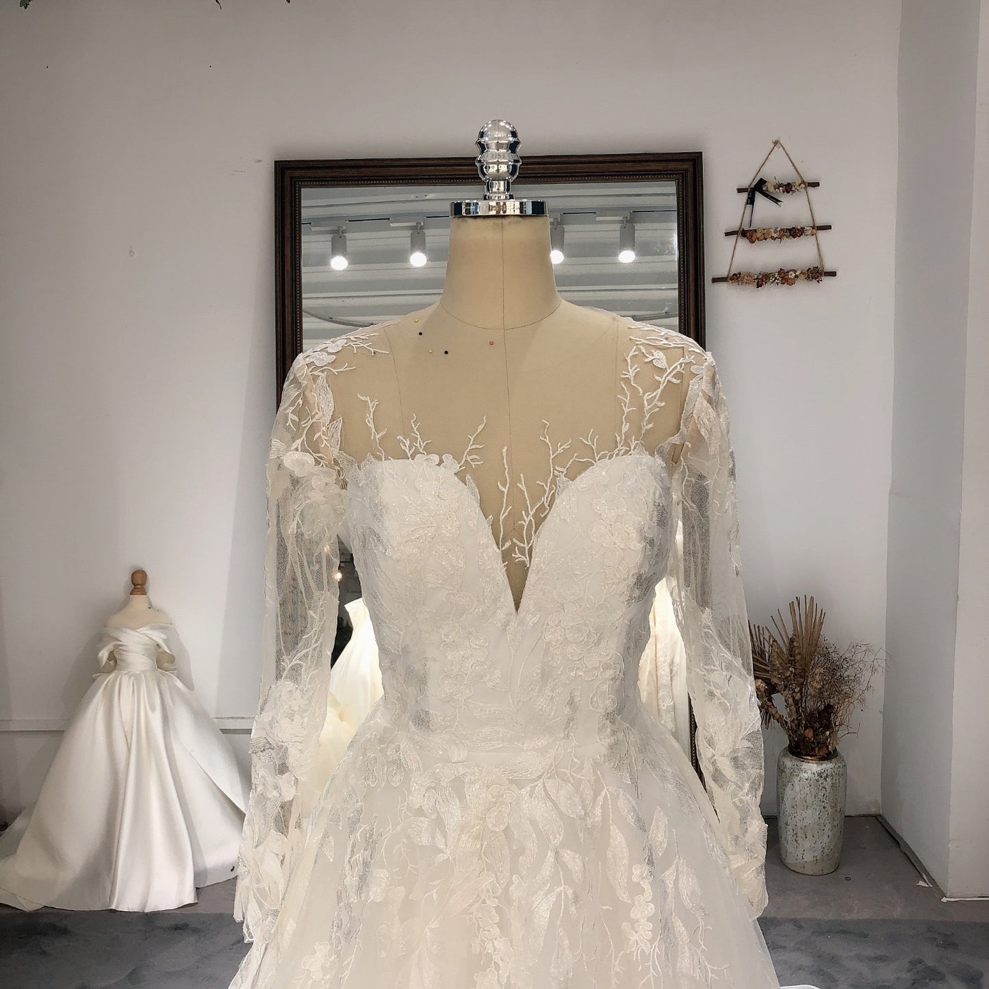 This elegant ball gown is the perfect choice for any wedding with its delicate illusion sleeves. The sheer detailing adds a touch of romance, while the full skirt creates a stunning silhouette. Perfect for any bride looking for a timeless and classic look.